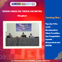 Dalam rangka meningkatkan partisipasi dosen dalam pengusulan proposal Penelitian dan Pengabdian kepada Masyarakat skim DRTPM, LPPM UM Metro mengadakan acara Coaching Clinic ; “Tips dan Triks untuk Mendapatkan Hibah Penelitian dan Pengabdian kepada Masyarakat dari DRTPM”.